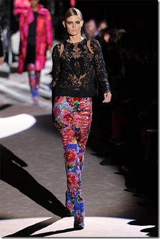 Njegov prvi povratak na pistu od kada je osnovao svoju modnu marku bio je pod lupom modnih kritičara. Kolekcija koja u poptunosti odstupa od Fordove preopoznatljive elegancije i seksipla nikoga nije ostavila ravnodušnim. Leopard print, cvetno izdezenirani vez na širokim čizmama, rese, “bomber” jakne i dugačke glamurozne haljine predstavljaju jednu veliku mešavinu gde se prepliću rok i pop. Njegova kolekcija pod nazivom “Cross Cultural Multi Ethnic” predstavlja samu granicu između prenaglašenog kiča i skupog glamuroznog izgleda, ali to može samo veliki Tom Ford koji ima moć da pomera granice kako god to poželi.![]()